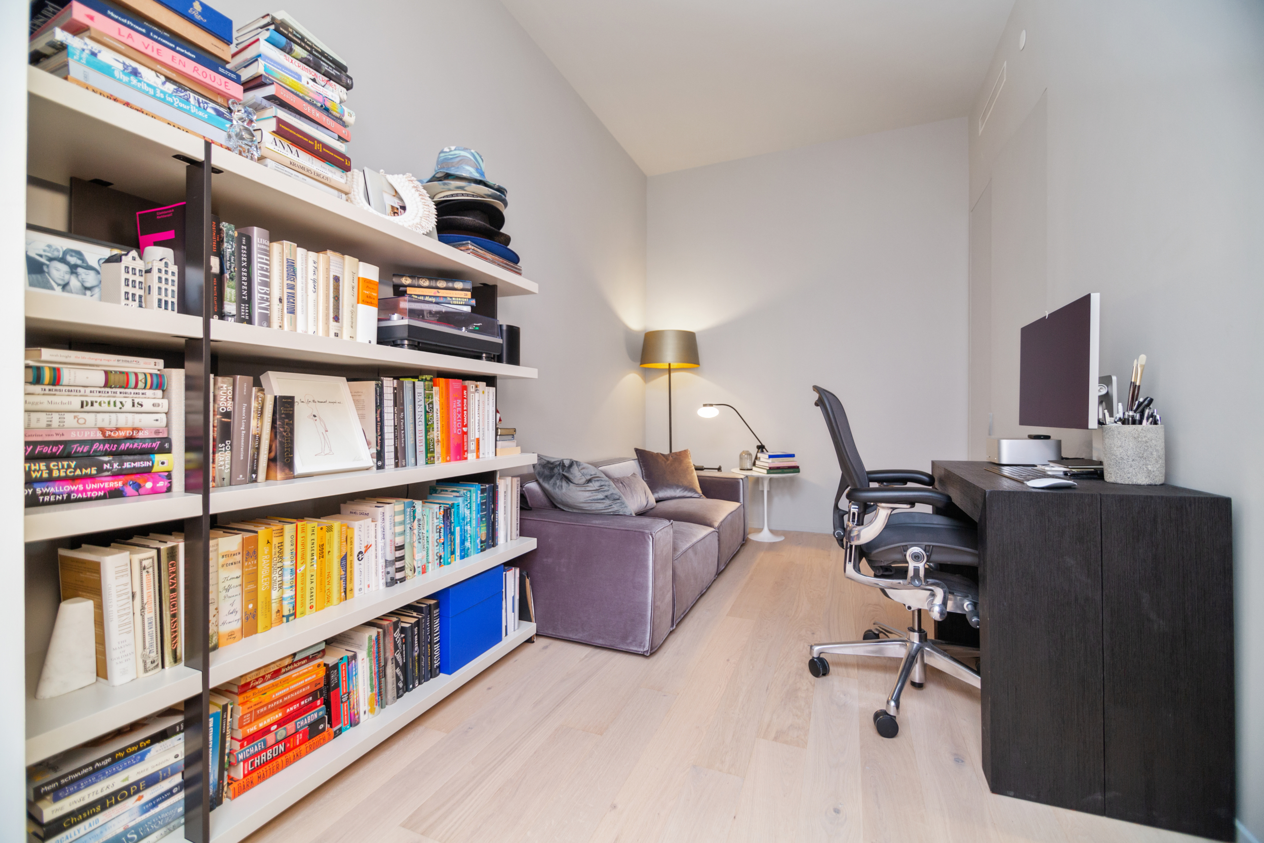 The king sized primary suite is flanked by a wall of restored white brick, coupled with large northern facing windows making the room bright and airy. A large walk-in closet provides ample storage space for all your belongings. The incredible primary ensuite bathroom showcases custom Haisa hand-clipped marble mosaic floor, a walk-in stone shower, and Dornbracht fixtures. A RiFRA bleached white oak vanity and large heather grey porcelain wall tiles adds to the overall spa-like aesthetic. You will also find a full-height built-in mirrored medicine cabinet for all your storage needs. The unit has ample storage and closet space throughout!