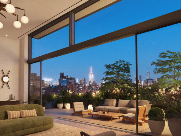McBride’s 1,600-square-foot aerie offers the ultimate Manhattan experience, featuring floor-to-ceiling windows with breathtaking views of the city skyline and direct sightlines to the iconic High Line park. The upscale unit boasts two spacious bedrooms and 2.5 baths, with the primary bathroom serving as a true sanctuary complete with a deep soaking tub and elegant marble flooring.