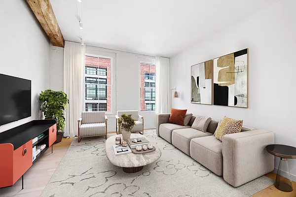 Step into authentic loft living in the heart of DUMBO with this luminous, pin drop quiet 1-bedroom, 2-bathroom condominium, where classic industrial character meets refined modern design.