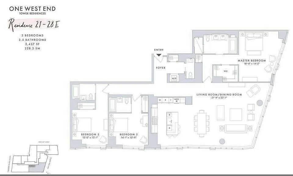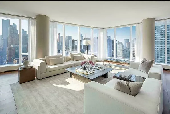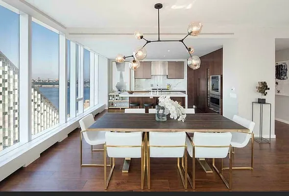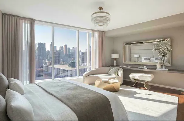 Commanding a full city block between 59th and 60th Streets at West End Avenue, One West End is home to 35,000 square feet of indoor and outdoor resort-inspired amenities including a 75-foot swimming pool within a double-height cantilevered atrium, a private fitness center, and spa, and a 12,000 square foot terrace featuring cabanas, lush green spaces, and areas for grilling and outdoor entertaining. Additional grandly-scaled amenity spaces include a living room with fireplace, media, billiards, and game rooms, a children’s playroom overlooking the garden terrace, and a private dining room with a chef’s demonstration kitchen.