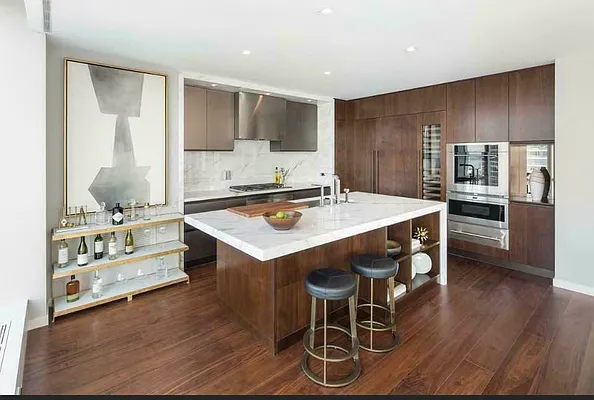 This spectacular 2,457 square-foot corner three bedroom, three-and-a-half bath residence designed by Jeffrey Beers is wrapped in floor-to-ceiling windows showcasing sunny city views to the south and east. A rich walnut residential entrance door complemented by a brushed bronze newspaper box and Nanz hardware invites one into the exceptionally finished space featuring seven-and-a-half-inch wide walnut plank flooring throughout.