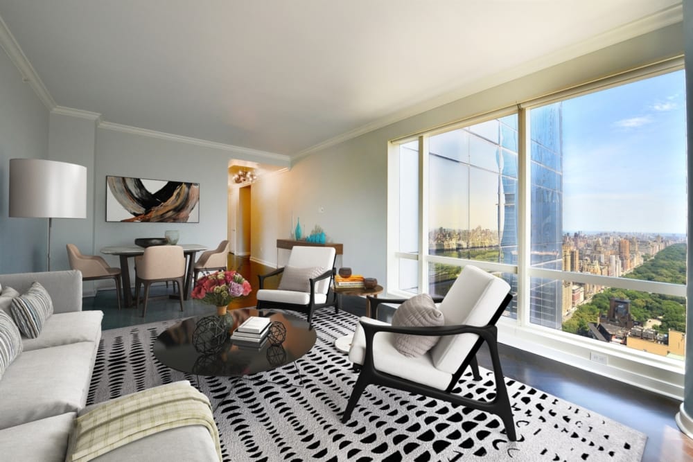 Furnished Photos are Virtual Images. DRAMATIC 1412 sq. ft stunning apartment features two bedrooms and two bathrooms and has amazing Central Park, City and Hudson River views. At the offering price of $2,700,000 it is the LOWEST PRICE PER SQ FT apartment in the building. The Park Imperial is a Full Service, White Glove, 5 Star Luxury Condominium offering the finest in Boutique New York Living. There is a Fitness Center, Private Lounge, Party Room, Business Center and On-Site Parking. 230 West 56th St. #56C in Midtown, Manhattan. TRANFER FEE (6 MONTHS CC) PAYABLE BY BUYER