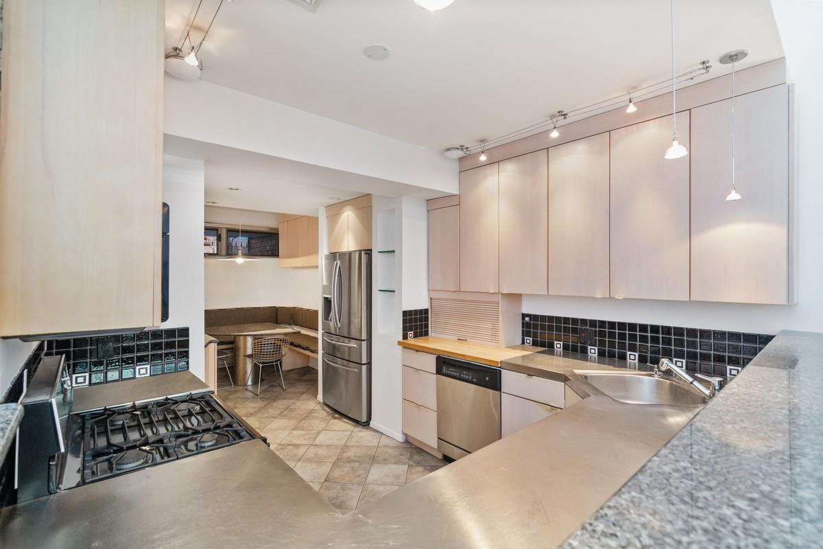 Enjoy the privacy of your own Townhouse with the amenities of a “World Class” condominium at 235 East 93rd St. This Upper Eastside, three level home features loft like living with an expansive, open living and dining area with a wall of windows and ceilings that are over13 ft in height. The open counter kitchen is replete with custom cabinetry, stainless steele counters and beautiful tile work. Adjoining the kitchen is the perfect dining area with banquette seating for those times when not entertaining in grand fashion. The Garden(166 sq ft) is the perfect setting for outdoor dining and urban gardening. The second level features an oversized bedroom, hall bath and laundry closet. The next level is the perfect place for your Primary Bedroom featuring a wall with north facing windows and two skylights. The suite is outfitted with endless custom closet space and a main bath with double sinks, a whirlpool tub and a separate stall shower. It’s not over yet….the next level up is home to a sitting room with exposed brick walls with its own private terrace (175sq ft and perfect for sunbathing) and its own elevated sleeping loft. Its a home that has no boundaries. Included with this Townhouse are all the amenities of Astor Terace including Central Heat and Air, 24hr Doorman and Concierge service, Fitness Center, Garage Parking, Bicycle Storage, Playroom, Valet Service, Garbage pick up at your front door and Live In Superintendant.
