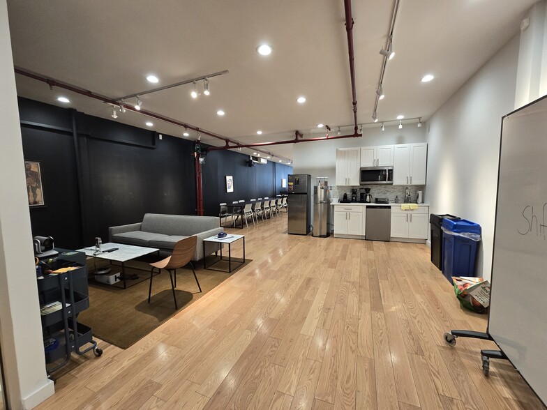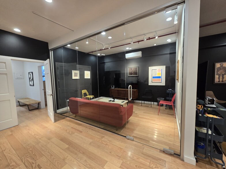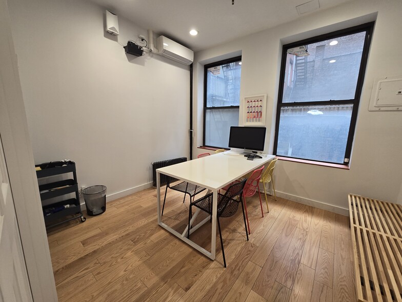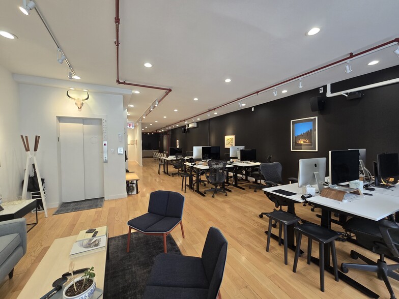 Bright, full floor presence with direct elevator access. Built out with mostly open plan, one conference room, and two offices. Two private bathrooms and a kitchen. Six split unit ACs. Video intercom. Newly renovated building lobby. Be in the heart NOMAD. 2,500 sq ft