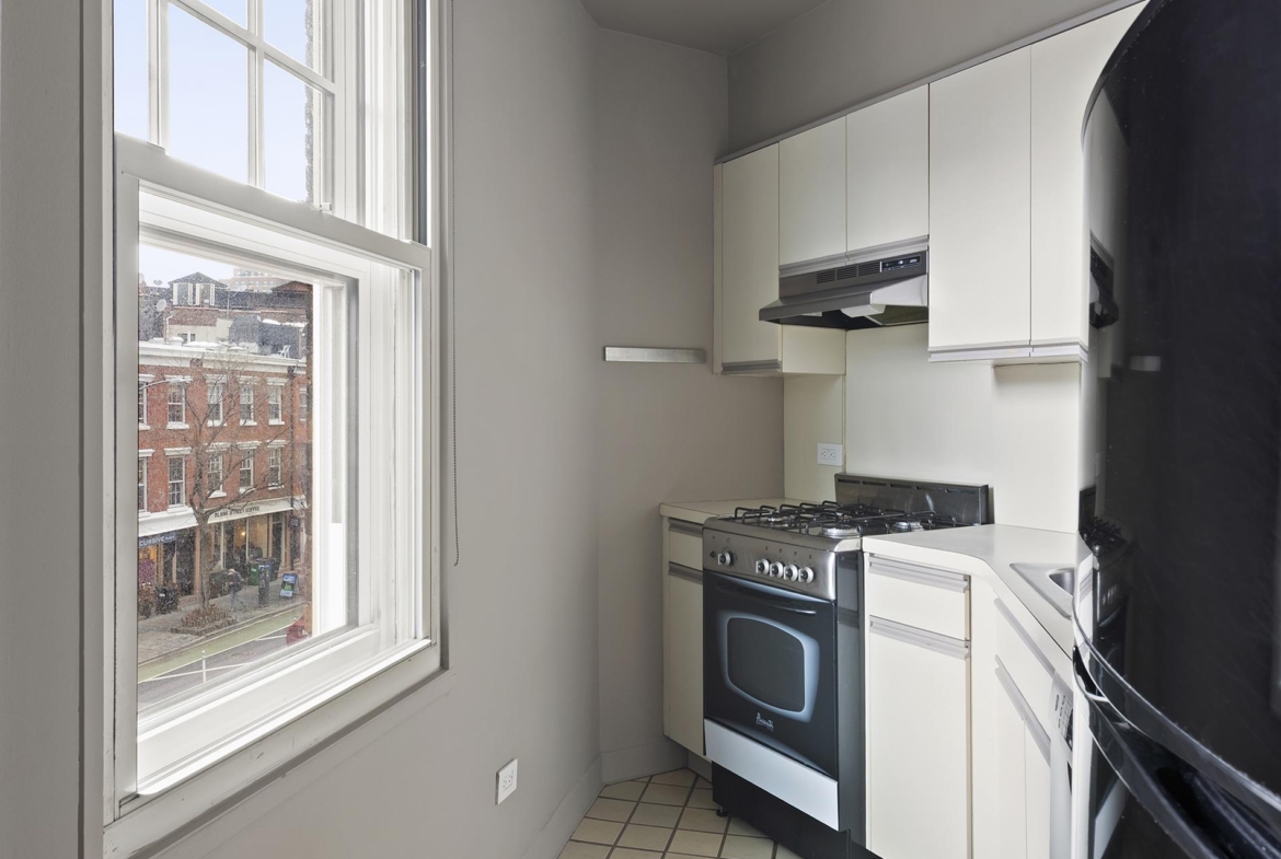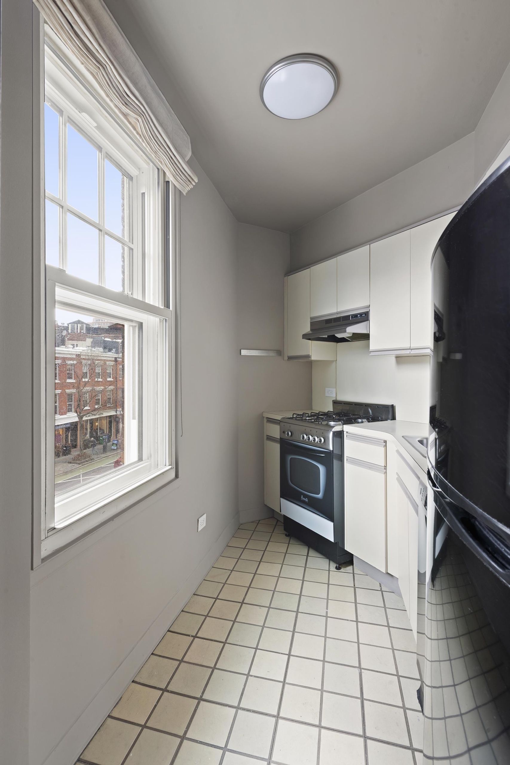 The oversized 20ft west-facing living room features unobstructed views of NYC’s oldest park Abingdon Square (1831), historic townhouses, and sweeping vistas of the West Village, ensuring an abundance of natural light and scenic beauty. A working wood-burning fireplace with original masonry adds to the room’s charm, making it the perfect space for both entertaining and relaxation. The kitchen is also separate and windowed!
