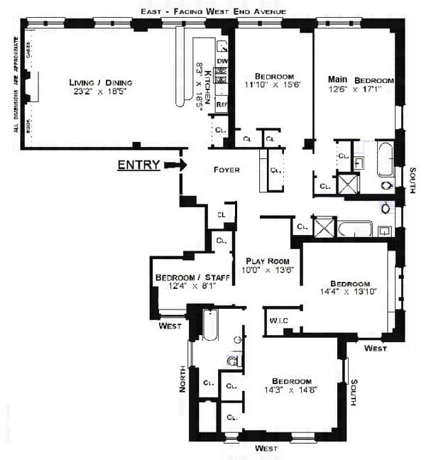 Fantastic Huge One Bedroom Opportunity: Enjoy this glorious 3.5 room Pre War beauty on desirable West End Avenue. This apartment features a gracious, oversized living room replete with original Pre War details including hardwood floors, crown moldings and 3 south facing windows and 1 west facing window. There is a separate dining area with room for a table of 6. The entry foyer leads to a home office area. The large main bedroom has both western and southern exposures. The newly renovated bathroom features a soaking tub and separate stall shower. The newly renovated kitchen has state of the art Viking appliances, marble counter tops and slate floors.