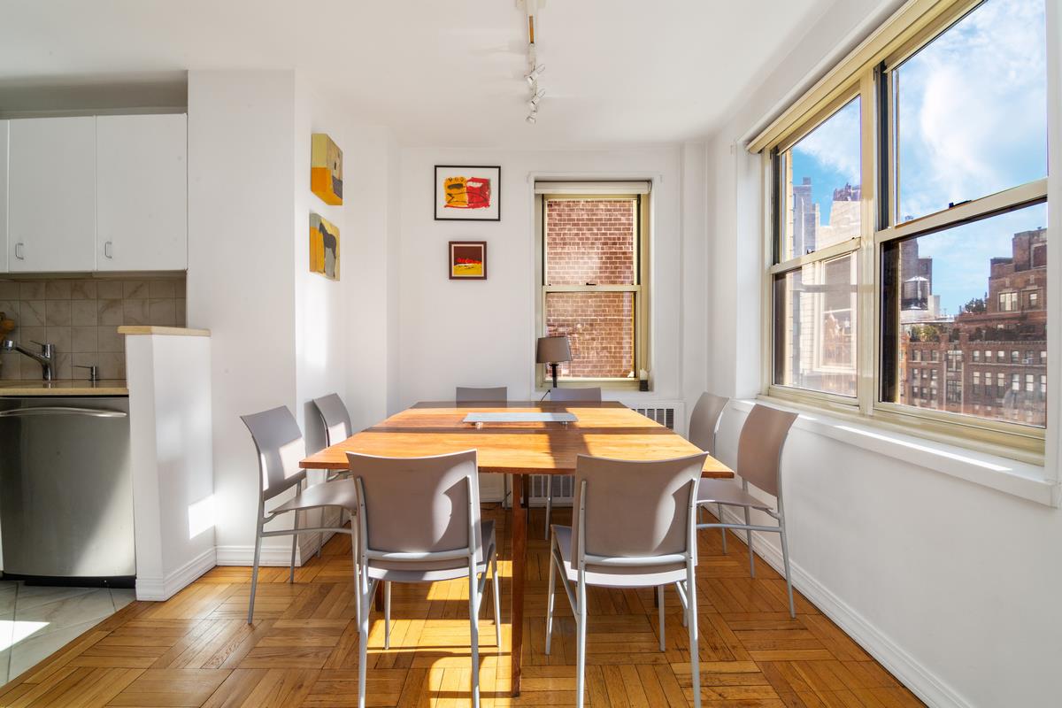 Let there be light! This corner apartment with open views to the south over the tops of the neighboring buildings is sunny, warm, and welcoming. The current layout with adjacent living and dining is spacious and perfect for entertaining, or convert the dining area to a second bedroom or home office to meet your needs. The updated kitchen features white and neutral colors with stainless appliances and plenty of counter space. Keeping with the theme, the bathroom is also crisp white with plenty of storage. The corner bedroom is a quiet oasis with natural light to enjoy in the morning. With an impressive five closets, there is plenty of space for all of your storage requirements.