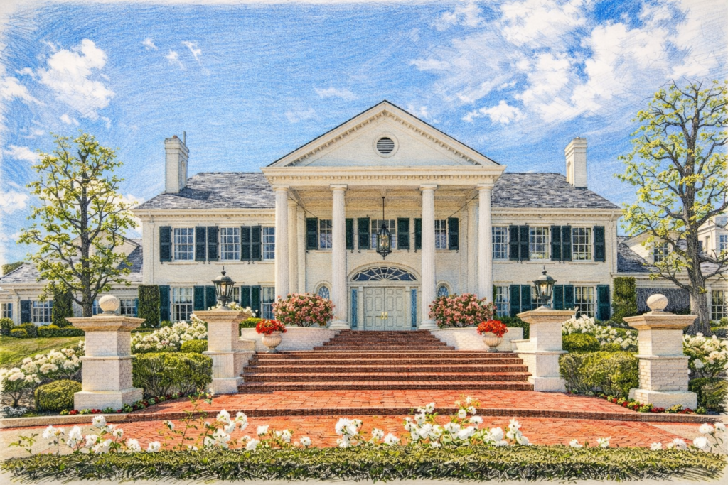 A 137-acre Georgian estate with equestrian facilities, a private helipad, orange groves, and a 24,000-square-foot automotive museum.
