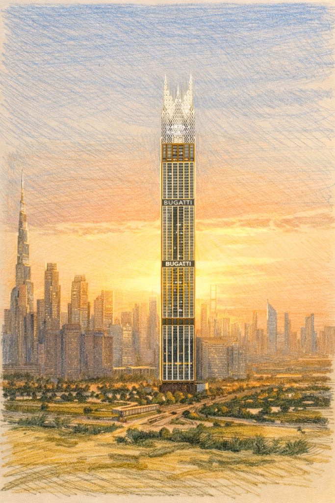 A forthcoming two-level penthouse atop a Jacob & Co.–branded tower, featuring an indoor infinity pool and jewel-inspired interiors.